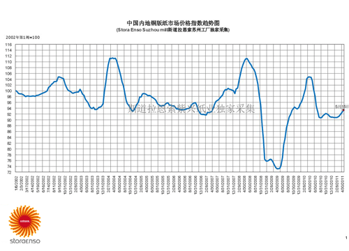 國內進口紙漿價格指數趨勢圖(2001年5月份=100)