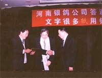 河南省印刷物資總公司黨委李書記、江西印刷廠代表等客戶代表先后發表了熱情洋溢的講話,對銀鴿的未來和發展、產品質量等提出了中肯的意見和建議。