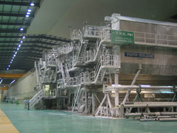 一號紙機(jī)采用國際最先進(jìn)的超大型設(shè)備,是目前世界上生產(chǎn)文化用紙車