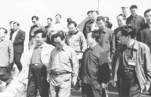 寧夏回族自治區黨委書記陳建國(左三)、自治區政府主席馬啟智(左二)到美利紙業公司視察,中衛縣委書記吳占東(右一)、美利紙業公司董事長劉崇喜(左一)陪同視察