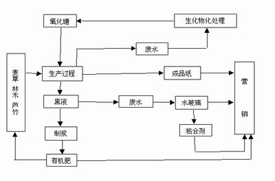 標準實施以后,我們做了一些宣傳工作,通過電視、報紙、網絡;同時舉辦了標準培訓班;造紙企業各地環保局的具體工作組織要求,企業要按照逐步加嚴的標準制定分階段達標方案。環保局督促企業制定此方案并負責備案。今年5月份,政府進行了一次暗訪。在所有的四十一家企業當中,百分之八十五達到了第一階段的標準線,為什么還有百分之十五還沒有達到呢?就是有八家企業今年要關閉。部分企業提前達到或基本甚至超過了第二階段的標準,泉林紙業說的比較保守,其污水中的COD降為150毫克/升,實際上他們的測試結果已低于120毫克/升,已經提前達到第三階段的標準。太陽紙業能夠穩定在150毫克/升左右。華鑫紙業能穩定在200毫克/升,還有一些企業在200到300毫克/升之間。今年七月,我們在濟寧市召開了草漿造紙企業污染現場會,這個現場會觀摩一些先進企業的作風,這些企業能夠做到的,我們其他企業也能夠做到;這些企業的做法,其他企業也可以借鑒。會上我們的分管省長做了重要講話,講話中一個很重要的問題就是山東要實施全中國最嚴格的環境管理制度。分階段逐步加嚴的地方污染物排放標準一定要得到堅決地貫徹實施,也就是說,到2010年如果企業不能達標,我們會堅決地關閉;當然只是丑話在先,實際上我們希望一個企業都不要關,“不戰而驅人之兵”,不付出社會成本而實現雙贏,現在看來這種可能性是很大的。泉林紙業的工作就是非常出色的,坦率地說,今年年初他們的工作路線不錯的時候,當時我們的很多同志還是打著問號,不要讓企業糊弄了環保局呀!我當時也不敢確信,特意派了兩組暗訪小組,到泉林的排污組,還到高唐縣行政轄區的出境斷面,企業可以作假,出境斷面是無法作假的。高唐只有一個出境斷面,兩個暗訪得到的效果都很好,我到泉林集團現場突查生產工藝,突查治污過程,最后判斷這個企業治污確實過硬,而且名副其實。高唐泉林是我省草制漿量最大,制漿能力最大的企業,泉林這種做法是不是可以認為是中國造紙工業發展循環經濟的一種模式?我們是不是可以把它稱為造紙工業發展循環經濟的泉林模式,如圖所示: