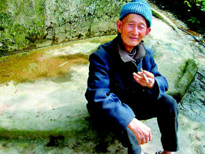 冉廣明老人經(jīng)常坐在古法造紙的大型工具———破敗的碾 盤上,回憶過(guò)去的歲月