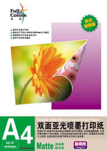 如果打印的質量要求再稍高一點,是高要求的文本,如:合同或標書、一般的圖文混合文本等。那就要用到普通噴墨打印紙了。它是噴墨打印機的最低檔打印介質,其打印效果比使用復印紙要稍好一些。因為通常它是由各打印機廠商專門為自家產品和個人/家庭用戶設計,經過簡單覆膜處理,是一種在造紙機上通過專用的內部施膠劑進行內部施膠和通過專用的表面施膠劑在紙機施膠壓榨部進行表面施膠過的高級紙張(一般是堿性施膠的紙)。通常它比復印紙更細膩白皙,而且兩面均可以打印,打印分辨率一般在360dpi。因為這種紙使用的原料彈性大,價格比一般的辦公用紙(如復印紙、高級書寫紙、證券紙等)略高。因此成為許多噴墨打印機用戶的首選。它同樣可以用于靜電復印、激光打印、熱融打印、CAD噴墨打印、傳真等領域,適用范圍很廣。但需要注意的是,這些噴墨打印紙通常是針對某品牌的打印機及墨盒設計的,對其他的產品則沒有很好的兼容性。因此,一般要將它與該廠商自己的墨水配合使用,才能最大限度地發揮紙張本身的打印效果。常見的尺寸規格有A2、A3和A4等。