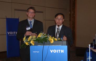板紙和包裝紙機優化部部門經理Uwe Knotzer和中國區服務部部門經理紀長有對《Voith Process Solutions——使您系統的性能協調一致》進行了介紹。