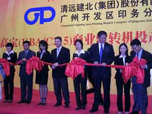廣州市委宣傳部副部長張健先生、廣州日報報業集團董事長、廣州日報社社長張德安先生、清遠建北集團股份有限公司董事長梁漢輝先生、高寶公司商業輪轉銷售副總裁Mueller先生,高寶亞太新加坡總經理Segger先生以及高寶大中華區首席代表岑寒先生等出席了正式投產儀式。
