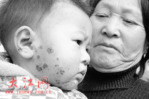 坂頭村一歲幼兒劉富凱臉部潰爛