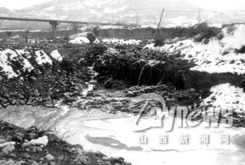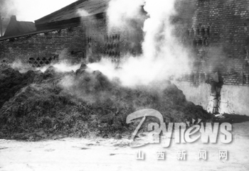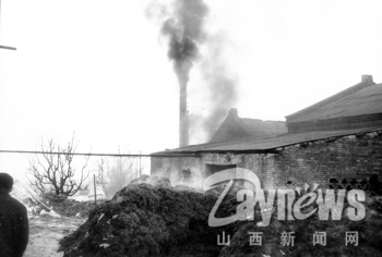 1月9日上午,絳縣氣溫很低,但孫王村附近的一家造紙廠廠房和加工車間卻熱火朝天,工人門正在緊張有序地生產(chǎn),利用年關(guān)這段“黃金歲月”狠賺一把。該廠離絳縣縣城不足30公里,下了車向西走約100米,看到路南黃黃的污水正在排放,遠(yuǎn)處黑煙滾滾。小張告訴記者,今天肯定生產(chǎn),沿著稠黃的污水往南走去,碰到兩個(gè)中年男子正在篩著煤粉。