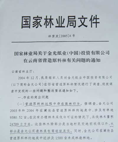國(guó)家林業(yè)局關(guān)于金光的通知原件: