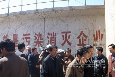 某造紙廠治污設備的水泥圍墻上醒目的標語寫著:“不是企業消滅污染,就是污染消滅企業”