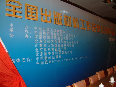 今天會議的主要內(nèi)容有,中國出版工作者協(xié)會及版協(xié)出版材料工作委員會的領(lǐng)導(dǎo)做工作報告,傳達新聞出版署在中國版協(xié)會議上的講話。河南銀鴿、北京金冠方舟紙業(yè)物流有限公司、北京畫中畫印刷的代表致辭。