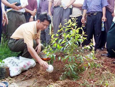 圖為講解培訓桉樹幼林追肥的方法