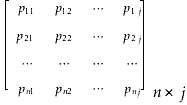 3.1 問(wèn)題描述與算法流程實(shí)際中的紙張生產(chǎn)尋優(yōu)問(wèn)題可以描述為:根據(jù)調(diào)整后的正式生產(chǎn)計(jì)劃,要求生產(chǎn)寬度分別為Lk(k=1,2,…,j-1,j)的j種不同規(guī)格的紙卷,其中每種規(guī)格紙卷需求數(shù)量為mk,生產(chǎn)該批紙卷需要切割n個(gè)寬度為L(L在5.0~5.3m之間)的原紙卷,這有多種組合切割方案,每一種切割方案中,可以構(gòu)造如下矩陣: