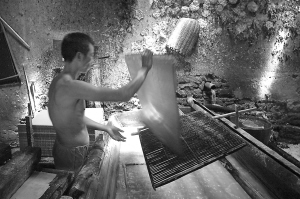 江西省上猶縣箬子嶂至今完整保存著1900年前的手工造紙工藝。在這個(gè)離縣城40多公里的深山村落,用于手工造紙的紙棚大多建在郁郁蔥蔥的竹林里。這些紙棚設(shè)施簡(jiǎn)陋,有的屋頂上只蓋著杉樹皮,由于年代久遠(yuǎn),長滿了青苔。過去這里幾乎每家每戶都有紙棚,做紙是主要的經(jīng)濟(jì)來源。如今,年輕人大多出門打工,精通這門手藝的人也就越來越少了。