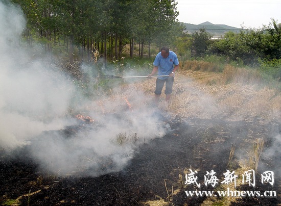6月13日,榮成市石島管理區王連街道辦事處一名63歲的老漢,在燒麥茬時,大火殃及草場上的玉米秸稈,老漢在撲火中被濃煙嗆死。
