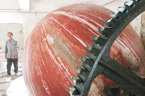 都安瑤族自治縣書畫紙廠一位工人在巡視蒸煮草料