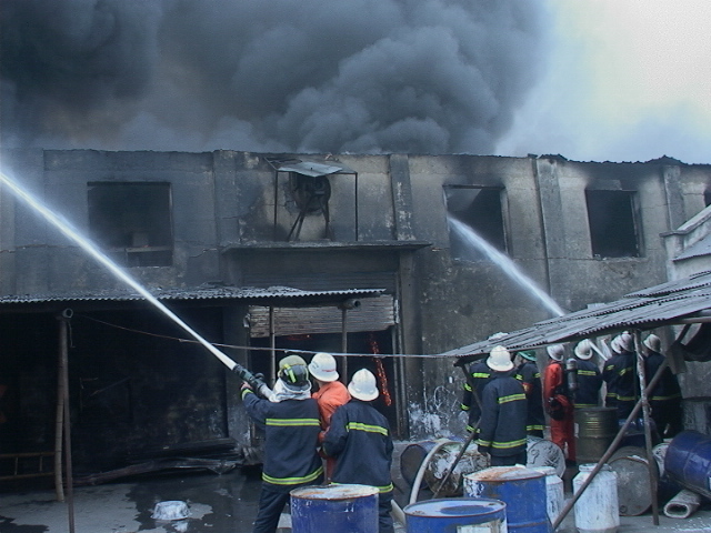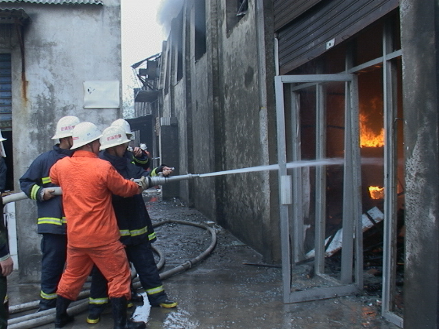 11月13日上午9時10分,潁東大隊接到指揮中心指令,阜陽市匯特種紙有限公司倉庫發生火災,潁東大隊立即出動了三輛水罐車,到場后火場指揮員立即進行了火情偵察,發現生產車間一片火海,濃煙滾滾,部分彩鋼瓦頂棚已塌落,火勢嚴重威脅著東邊的原料庫、北邊的辦公室和西邊一墻之隔的居民住宅的安全。火場指揮員命令參戰人員和車輛占據有利地形,按照“先控制、后消滅”的指導思想,出三支水槍,采取南北夾擊、圍攻堵截的方法,堅決防止火勢進一步擴大。同時,向市消防支隊值班室緊急求援。9時20分,市消防支隊政委吳獻旭、支隊長謝瑞龍、參謀長宋千啟率潁州消防大隊、棉庫專職消防隊、機場專職消防隊增援力量及時趕到。火場總指揮立即重新部署滅火力量,命令潁州消防大隊官兵出兩支水槍從東面阻擊火勢,防止火勢進一步擴大;機場消防對從西面出兩支水槍阻擊火勢,防止火勢向鄰近建筑蔓延;棉庫消防運水供水。市委常委常務副市長宋家偉、市公安局程曙光副局長聞訊后也親臨現場參與了滅火指揮工作。經過消防官兵艱苦奮戰,大火于10時34分被控制住;現場指揮部根據火情發展的態勢,果斷調整力量部署,組織突擊小組,集中優勢兵力,深入火場內部,強攻近戰,壓制明火,利用附近化工廠的消防栓直接供水和消防車運水相結合的方法,確保火場供水持續不間斷。在強大的密集水流和消防官兵的英勇作戰下,大火于11時30分被成功撲滅,保住了廠區原料倉庫、辦公室和周圍居民房屋的安全。