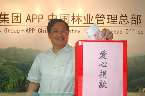 APP中國(guó)林業(yè)管理總部及各林務(wù)事業(yè)區(qū)紛紛開展了向地震災(zāi)區(qū)的募捐活動(dòng),設(shè)立了捐款箱。捐款現(xiàn)場(chǎng)排起了長(zhǎng)龍,大家熱情非常高漲,APP林業(yè)管理總部人力資源處王紅娟由衷地說(shuō):“災(zāi)情發(fā)生后,大家的心情一直很沉重,大家都非常關(guān)心災(zāi)區(qū)的情況, “怎么捐錢?”“怎么獻(xiàn)血?”從“5.12”地震發(fā)生以來(lái),許多員工不僅時(shí)刻關(guān)注著災(zāi)區(qū)救援進(jìn)展情況,還通過(guò)在線QQ、手機(jī)等捷徑捐款……員工們都急了…”