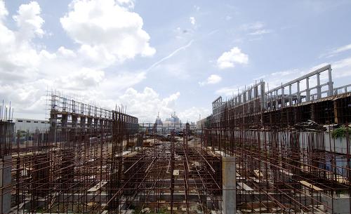 7月15日,洋浦金海漿紙廠160萬噸造紙項目工地。受金融危機影響一度停止建設的海南省重點建設項目——洋浦金海漿紙廠160萬噸造紙項目,至7月份已全面復工建設。