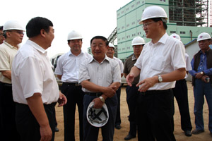在二期項目建設現場,高德武書記詳細匯報了企業的生產經營情況和二期項目建設情況。亞太森博一期工程現年產漂白硫酸鹽化學木漿31.5萬噸、高檔白卡紙板17萬噸,二期項目總投資113億元人民幣,年產100萬噸漂白硫酸鹽商品木漿。高書記飽含深情地說,正是得益于老領導的長期關懷,一期項目才能從開工建成到順利投產,正在擴建的二期項目才能在此生根發芽 。這時,楊軍書記補充說,二期項目于2008年4月開工建設,是山東省最大的利用外資項目,被列入山東省“十一五”重點建設項目,而且也是目前世界上最大的單條制漿生產線,項目投產后,亞太森博將成為中國最大的制漿企業。