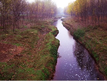 棕紅色造紙廢水使韋河閘下游變成了“紅河谷”最終流入淮河。