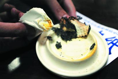 昨日,記者就此事采訪了青島科技大學輕化工程學院制漿造紙專業的齊老師。齊老師告訴記者,“劣質餐巾紙含有大量熒光劑及化學添加劑,燒完后白色瓷碟上會出現一層明顯的黃色油漬,或者是黃褐色的污漬,聞起來還有股刺鼻的氣味。 ”齊老師告訴記者,如果燃燒餐巾紙后留下黃色油跡,最大可能是這些紙中含有化學成分,例如脫墨劑、柔順劑、滑石粉、熒光增白劑等。昨晚,記者將買回來的8元和15元一大包的餐巾紙,分別放在白色瓷盤中點燃,燃燒后發現白色瓷盤上確實留下了黃色油污。記者隨后又點燃了一張從商場買回的品牌餐巾紙,燃燒后未見黃色油污。