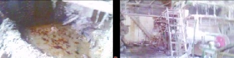 左圖:加工環境令人作嘔。右圖:機器老化還長綠毛。