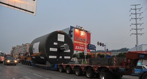 4日傍晚6時許,泉州市區(qū)南環(huán)路。一輛有著90個輪子的大運(yùn)輸車,載著一個圓柱形的“巨無霸”,緩慢地在南環(huán)路上移動,引起交通堵塞。市民們紛紛稱奇:這個大家伙到底是什么?