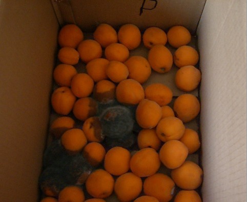 “創新紙箱”是將天然礦物粉末稀釋在玉米淀粉粘合劑中,生產出3層或5層的瓦楞紙箱。與普通紙箱相比,一是這種紙箱可增強吸著力,使箱子中的生物加大運動,吸著內容物呼吸所產生的氣體;二是可通過天然礦物粉末合成調節溫度、濕度;三是可吸著有害物質,抑制生物腐爛和細菌發生,這種紙箱在韓國,將冬天產的濟州橘子分別裝在“創新紙箱”和普通紙箱內,“創新紙箱”的橘子經過47天仍保持新鮮,而普通紙箱的橘子3天開始水分蒸發,經過21天全部腐爛。經過一年左右時間,花費大量的心血,使得一些紙箱廠和果蔬基地的負責人逐漸認識了這種產品。不久前在河北涿州一紙箱廠成功生產出5層“創新紙箱”。試驗對比效果明顯。“創新紙箱”和普通紙箱均裝入半箱杏,6天后普通紙箱的杏已成片爛掉并生蟲,而“創新紙箱”的杏僅有兩三個局部生霉(見圖片)。天津薊縣一紙箱廠和新疆庫爾 阿瓦提鄉長途運輸果疏隊也親自做了試驗,均感覺對比效果很明顯。