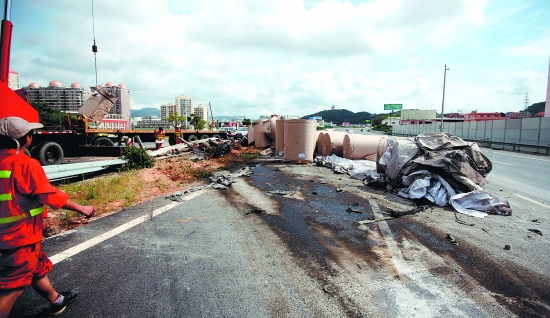 事發(fā)后,高速交警趕到現(xiàn)場(chǎng)處理。事發(fā)路段高速路A道只剩下緊急停車(chē)帶可以通行。昨日上午10點(diǎn)30分左右,現(xiàn)場(chǎng)基本清理完畢,高速路恢復(fù)正常通行。