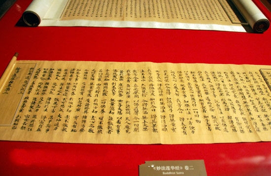 甘肅博物館館藏的公元618到907年,紙質(zhì)經(jīng)文