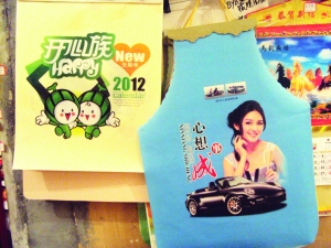 采訪中,記者還發(fā)現(xiàn)一些很有個性的掛歷:一個用無紡布做的環(huán)保袋式樣的掛歷,消費者在當月過完后,扯下掛歷,去超市購物時可當環(huán)保袋使用。“環(huán)保袋掛歷”旁邊掛著的,是一個同樣用無紡布做的“圍裙”掛歷,掛歷的形狀猶如一圍裙,后面還有一根繩子供系在身上,家庭主婦可在當月過完后當圍裙使用。尹老板告訴記者,還有一些年輕的消費者提出一些個性化的要求:“比如有要求把自己的婚紗照印在掛歷上的,有要求將和家人的合影印在上面的。”