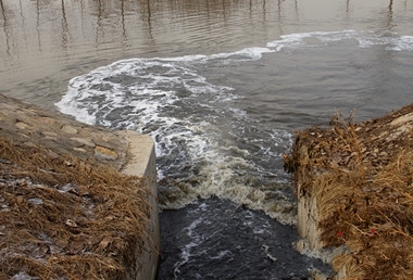 臨清污水處理廠廠區內的污水外排口,未經處理的污水直接外排。
