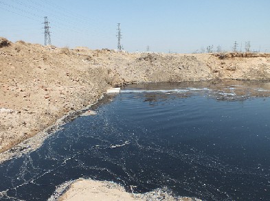 順著下游方向,記者沿著蜿蜒的沙河步行了一公里左右。記者越過一道土堤,看到了比先前更為震撼的一幕:一個巨大的“黑水湖”呈現眼前!從“黑水湖”的形成時間看來,這絕對是“冰凍三尺,非一日之寒”。