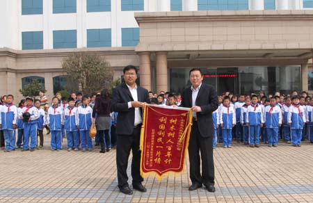 作為學生了解中國古代四大發明之造紙術工藝和環境保護的社會實踐基地,該公司每年接待百余批周邊學校學生到公司參觀學習。為表達對該公司的感謝,蘭州路小學為該公司送去了寫有“樹木樹人百年計,利民利國一片情”的錦旗。