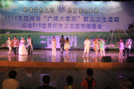 6月5日,在世界第43個環(huán)境日到來之際,2014年欽州市紀(jì)念“6·5”世界環(huán)境日文藝專場晚會在欽州灣廣場圓滿舉辦。在晚會的15個節(jié)目中,由廣西金桂漿紙業(yè)有限公司選送的“環(huán)保時裝秀”帶給現(xiàn)場觀眾一場別開生面的時裝盛宴,折損的太空包、一次性桌布、遮陽布等生產(chǎn)生活中被遺棄的廢舊品,在工作人員的精心打造下,變成了靚麗的晚禮服、風(fēng)衣、裙子等時尚服裝,在舞臺上盡顯“變廢為寶”的精彩。