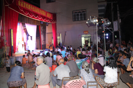 家有喜事,邀請親朋好友看一場欽州采茶戲,對于當(dāng)?shù)厝藖碚f是一件極為隆重的事情。動人婉轉(zhuǎn)的故事情節(jié)、朗朗上口的演唱,欽州采茶戲一直深受當(dāng)?shù)厝颂貏e是老年朋友的喜愛。在國慶節(jié)、重陽節(jié)來臨之際,公司根據(jù)當(dāng)?shù)孛癖姷娘L(fēng)俗喜好,安排為期6天的采茶戲分別在鹿耳環(huán)社區(qū)、雞丁頭社區(qū)上演,與社區(qū)居民共度雙節(jié),為老年人送上節(jié)日問候及關(guān)懷。