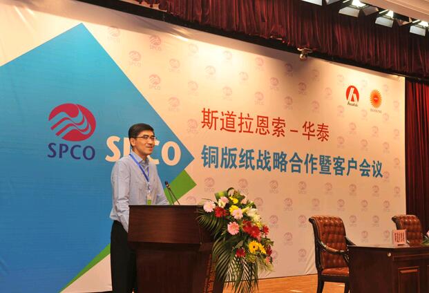 簽約儀式之后,斯道拉恩索集團(tuán)中國(guó)區(qū)總裁宋望球和華泰集團(tuán)董事局主席李建華分別代表合作雙方致辭。“我們對(duì)廣大客戶給與的大力支持,對(duì)于華泰集團(tuán)在此次品牌轉(zhuǎn)讓中的全力合作,表示真摯的感謝!”斯道拉恩索中國(guó)區(qū)總裁宋望球表示,“此次品牌轉(zhuǎn)讓工作中,整個(gè)團(tuán)隊(duì)表現(xiàn)出了非常高的效率與專業(yè)能力。作為一家負(fù)責(zé)任的供應(yīng)商,斯道拉恩索對(duì)于品牌轉(zhuǎn)讓非常重視,希望通過(guò)大家的共同努力,讓SPCO品牌得到傳承和發(fā)揚(yáng)光大。”