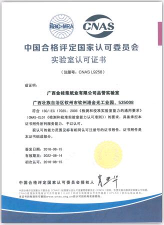 近日,APP(中國(guó))旗下企業(yè)廣西金桂漿紙業(yè)有限公司獲得了由中國(guó)合格評(píng)定國(guó)家認(rèn)可委員會(huì)(CNAS)頒發(fā)的實(shí)驗(yàn)室認(rèn)可證書。