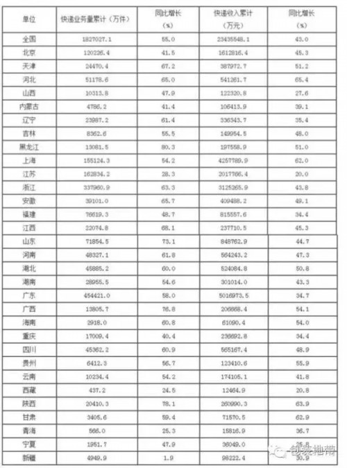 快遞業(yè)務(wù)量排名前50位的城市分別是: