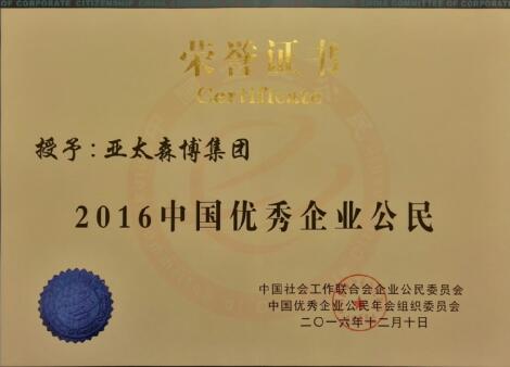 12月10日,2016第十二屆中國優秀企業公民年會在北京舉行。年會對本年度在社會責任方面做出突出貢獻的企業、團體、個人及優秀項目等進行了表彰。亞太森博集團憑借在社會責任方面的勇于擔當和突出成績被評為“2016中國優秀企業公民”。該集團董事長李建紹做了主題演講,從業務模式創新、循環經濟及環保推廣創新、社區工作創新等方面介紹了企業社會責任的創新實踐。