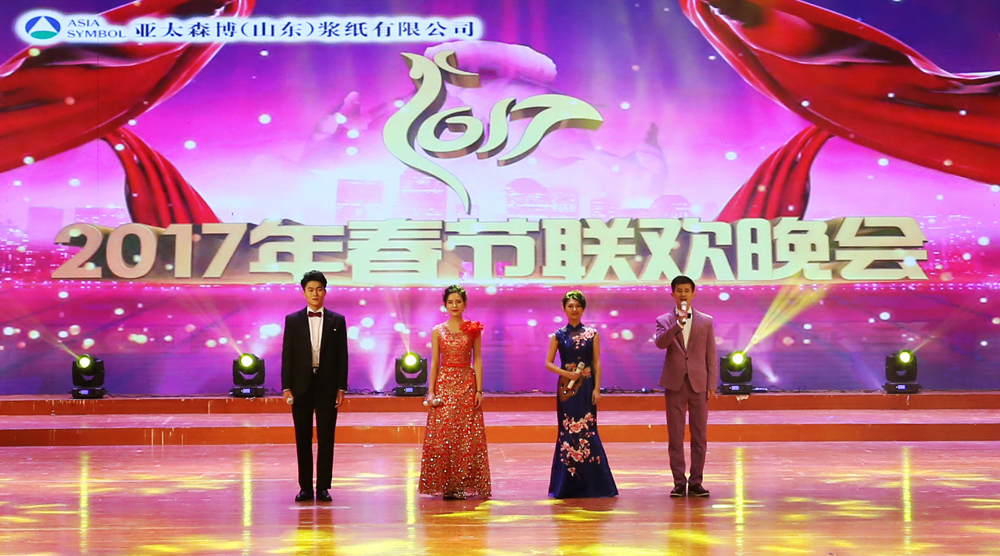 1月7日晚,亞太森博(山東)漿紙有限公司2017春節(jié)聯(lián)歡晚會(huì)在日照會(huì)展中心精彩上演。公司管理層、員工及員工家屬齊聚一堂,共同迎接新春佳節(jié)的到來。董事總經(jīng)理汪波致新年賀詞,分析了全年的經(jīng)營(yíng)形式,對(duì)全體員工一年來的辛勤工作表示感謝,并為全體員工及員工家屬送上新年的祝福。晚會(huì)現(xiàn)場(chǎng)還對(duì)一年來表現(xiàn)突出的先進(jìn)集體和個(gè)人進(jìn)行了表彰。