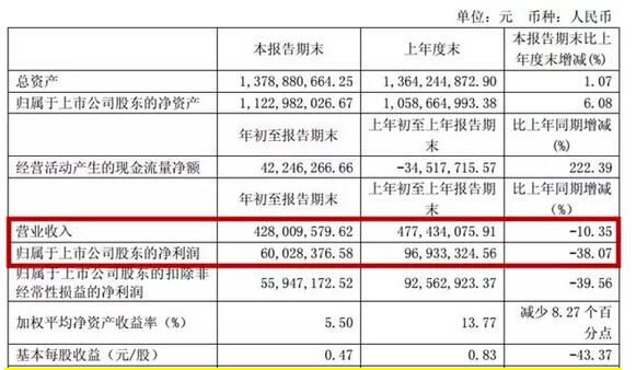 4月28日,剛剛公布一季報的浙江榮晟環(huán)保紙業(yè)股份有限公司,股價遭遇砸盤,開盤不久即跌停,最終股價收于40.30元,下跌4.48元,創(chuàng)一年來的股價新低。以老板馮榮華家族持股79475950股計算,一天時間身家跌去3.56億元。 行事不專業(yè)還是有意為之? 股價為何大跌,要從榮晟環(huán)保的一季度說起。 4月27日,榮晟環(huán)保發(fā)布2018年一季報,公司2018年1-3月實現(xiàn)營業(yè)收入4.28億元,同比下降10.35%;歸屬于上市公司股東的凈利潤6002.84萬元,同比下降38.07%。