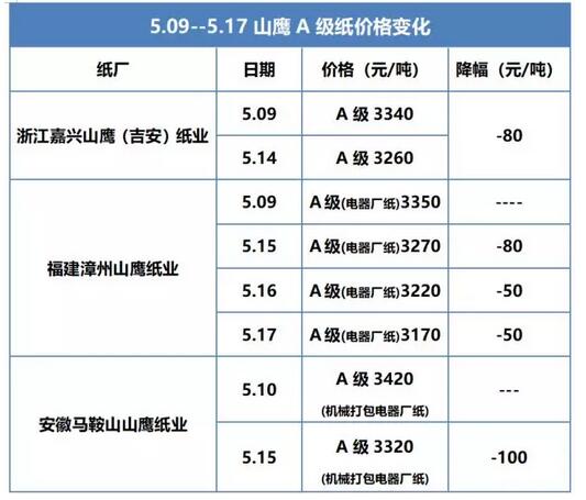 進(jìn)入夏季,這個(gè)溫度似乎和漲價(jià)潮串通好了,連著好幾天瘋狂飆升。在紙價(jià)還是整體居高不下,其他龍頭紙廠都按兵不動(dòng)的時(shí)候,山鷹紙業(yè)自5月中旬來連續(xù)反向下調(diào)廢紙價(jià)格,與同期全國(guó)紙價(jià)走勢(shì)情況差別很大。 基于以下分析認(rèn)為,山鷹紙業(yè)調(diào)價(jià)原因與外廢配額和產(chǎn)業(yè)鏈優(yōu)勢(shì)有關(guān)。