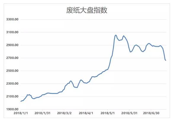 有行業(yè)朋友說比同行至少低了10%的,有說平米價(jià)差達(dá)到0.50元的。總之,這是一張石破天驚的行業(yè)超低價(jià)。其報(bào)價(jià)含稅,但做貨前提是——必須是預(yù)付款!這是一個(gè)“變現(xiàn)利益”與“搶占市場(chǎng)”兩相宜的策略。大型紙企不一定通過同業(yè)價(jià)格競(jìng)爭(zhēng)來獲取利益,轉(zhuǎn)而向下游“變現(xiàn)”利益,既維護(hù)了同行價(jià),還實(shí)現(xiàn)了產(chǎn)業(yè)鏈的延伸。 你別不信,國(guó)廢仍處高位 廢紙回收淡季來臨,同期外廢審批進(jìn)口數(shù)量增加,環(huán)保肅嚴(yán)、紙廠資金周轉(zhuǎn)周期增加等多個(gè)原因下,上周周一(7月14日)起廢紙價(jià)格狂跌,部分不良媒體借機(jī)炒作紙價(jià)下滑制造行業(yè)恐慌。不過好在市場(chǎng)快速“打臉”,7月22日,國(guó)廢市場(chǎng)普遍回暖。 根據(jù)紙去哪了指數(shù)顯示,現(xiàn)在廢紙價(jià)格還是處于一個(gè)較高位置的。按照2018年1月以來的國(guó)廢大盤情況來看,國(guó)廢大盤仍然處于高位!