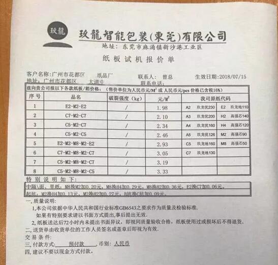 近日,一張玖龍智能包裝(東莞)有限公司的《紙板試機報價單》低調流入市場,剎那間,整個珠三角的紙板及紙箱行業陷入了一片刀光血影之中。按照東莞紙板行業人士的估算,該報價與同行同等規格的至少低了10%,每平米價差達可達0.50元之多。