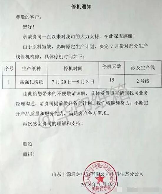 山東豐源中科宣布2號線高瓦紙機停機檢修15天 7月19日,山東豐源通達電力有限公司中科生態(tài)分公司宣布其2號線高瓦紙機停機檢修15天,時間是7月20日-8月3日。停機檢修的原因是由于廢紙短缺,基本和本月其他宣布停機檢修計劃的造紙廠大佬理由一致。