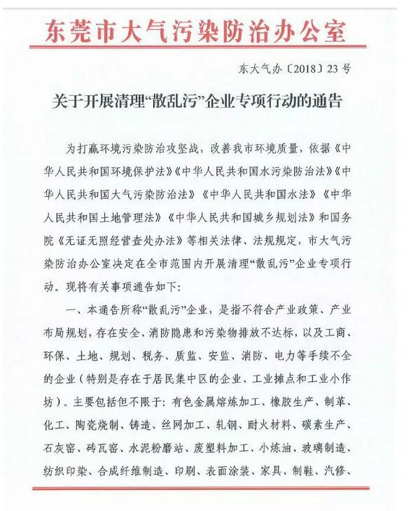 為何東莞今年重拳整治污染企業? 去年以來,東莞市空氣質量形勢嚴峻,空氣優良天數大幅下降。4月18日上午,東莞市委、市政府召開全市藍天保衛戰動員大會,會議下發的《東莞市藍天保衛戰行動方案》通過七大方面32項具體行動任務,強力推進以鐵腕手段堅決打贏藍天保衛戰。