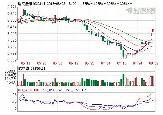 理文公布半年報之后,其靚麗的業(yè)績立即引發(fā)市場的正面回應(yīng),理文股價一度跳漲5.37%。8月2日,理文股票維持強勢,繼續(xù)大漲2.71%。 與此同時,理文造紙(02314.HK)公布,2018年8月2日,公司按每股8.12港元-8.18港元,耗資約2123.65萬港元回購259.8萬股,占已發(fā)行股份的0.059%。表明理文造紙對公司股價和未來業(yè)績的強大信心。