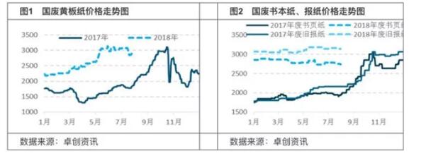 國內(nèi)外廢: 7月份,國內(nèi)外廢市場整體表現(xiàn)較為平淡。盡管CCIC北美公司固廢裝運前檢驗(PSI)申請恢復(fù)正常,但由于轉(zhuǎn)運前檢驗細則的全面實施,CCIC人員不足,使得檢驗周期延長,且檢驗費用大幅提升。而國內(nèi)對美廢海關(guān)開箱檢查要求持續(xù)嚴(yán)格,使得美廢入關(guān)緩慢。同時,七月份,中美貿(mào)易爭端開打,外貿(mào)風(fēng)險進一步上升。還有,人民幣兌美元匯率持續(xù)貶值,也加大了紙企的采購成本。這都對紙企進口美廢形成較強壓制。由于美廢進口受限,紙企加大了對日廢的進口,但由于日廢供應(yīng)相對有限,貨源供應(yīng)緊張,日廢價格也維持高位。另外,在七月份,固廢中心分別在7月2日和7月16日審核了共計260.63萬噸的廢紙進口份額,審批再度放量。但是大部分批文還是給了玖龍、理文和山鷹等大型紙企。 2、廢紙供應(yīng)情況分析 7月國廢供應(yīng)結(jié)構(gòu)略有變化,因為暑假廢舊書本紙貨量處于高峰期,故而7月廢舊書本紙貨量占比上升約2%。進口方面,6月份國內(nèi)廢紙進口112萬噸,環(huán)比增加30.23%,同比減少16.91%。1-6月廢紙累計進口611萬噸,同比減少30%。6月份國內(nèi)進口環(huán)比增加,一方面是解除了美廢進口限制,另一方面是在國廢價格在大幅走高之后,也使得有批文的紙企加大了進口需求。 3、廢紙需求情況分析 7月份瓦楞紙及箱板紙行業(yè)開工率約為69.10%,較6月份下降1.43%。7月份瓦楞紙及箱板紙紙廠成品紙銷售不振,部分紙廠因環(huán)保、利潤、廢紙供應(yīng)等問題而短暫停機,導(dǎo)致紙廠整體開工率低位運行。7月份白板紙行業(yè)開工率小幅下滑。 4、廢紙庫存情況分析 7月廢舊黃板紙廠庫存天數(shù)約為6.3天,環(huán)比下降8.70%。7月紙廠廢舊黃板紙庫存繼續(xù)下降,因成品紙銷售不佳,紙廠采買興趣整體低迷。 5、廢紙盈利情況分析 7月國廢黃板紙打包站出貨利潤率震蕩上行,主要因為震蕩趨勢使得打包站平均回收價格有所下降。 6、國廢后期價格走勢分析 8月份廢紙市場的焦點是中秋訂單原紙需求能否如期兌現(xiàn)。那么,外廢供應(yīng)情況持續(xù)低位運行,打包站夏季回收成本有所上升,均利于廢紙價格上行。但同時,中美貿(mào)易爭端對成品紙需求有一定的影響,并且此影響擴散至心態(tài)層面,影響二級廠拿貨情緒,另外,紙廠方面開工負荷繼續(xù)下滑,二者均不利于廢紙需求。 中秋節(jié)包裝需求以內(nèi)需為主,那么從紙箱的加工交貨時間來計算,8月中上旬,中秋節(jié)紙包裝訂單將開啟,或可促進成品紙銷量上升,并利于廢紙價格短暫沖高。卓創(chuàng)資訊預(yù)計,8月份國廢黃板紙價格走勢或以沖高回落為主。8月份國廢書本紙市場貨源減少,市場需求旺季陸續(xù)開啟,預(yù)計國廢書本紙價格或緩慢上升。國廢報紙價格穩(wěn)中偏上運行。