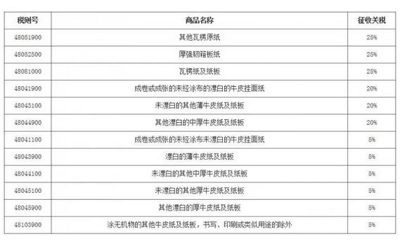 涉及2017年瓦楞紙進(jìn)口量近60萬噸、箱板紙進(jìn)口數(shù)量126萬噸 據(jù)清單顯示,在加征5%的產(chǎn)品名單中,最重要的產(chǎn)品是木漿,包括了12類產(chǎn)品,這些產(chǎn)品原來的進(jìn)口關(guān)稅基本都是0。此外,還有一些包裝紙、特種紙和紙制品。 在加征20%的產(chǎn)品名單中,主要是生活用紙、特種紙、部分文化紙以及紙制品。這些產(chǎn)品的關(guān)稅原來多在5%左右。在加征25%的產(chǎn)品名單中,包括了新聞紙、部分文化紙、瓦楞原紙、箱板紙以及部分紙制品等。這些產(chǎn)品原來的關(guān)稅多在5%-7.5%。 因此,具體在瓦楞紙及箱板紙方面,則可以根據(jù)加征25%、20%、5%的關(guān)稅分為三種類型,據(jù)統(tǒng)計: